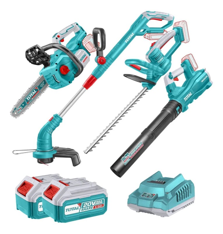 Combo Inalámbrico Total 20v De Jardín: Motosierra 12'', Bordeadora, Cortacerco Y Soplador -