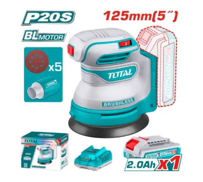LIJADORA ROTORBITAL A BATERÍA 20V 125MM TOTAL