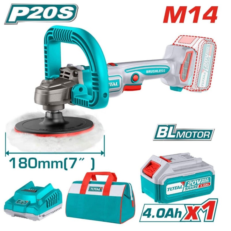 PULIDORA ANGULAR LI-ION 20V 400-2500 RPM (7") 180MM M14 4.0AH -