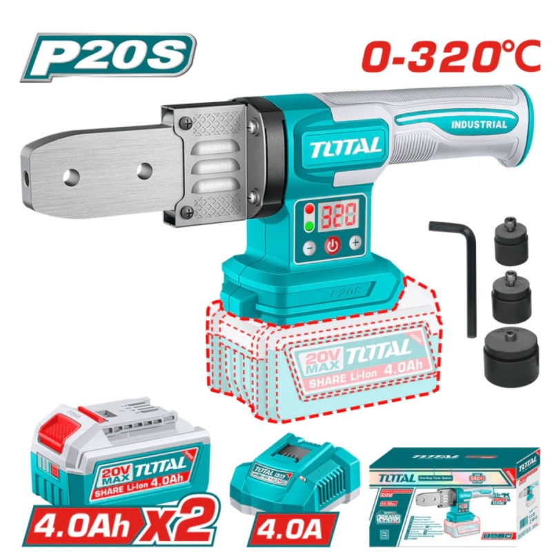 TERMOFUSORA 20V DIA: 20/25/32MM 320ºC INDUSTRIAL 2X4.0AH